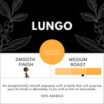 Savor the perfect balance of a long-style espresso with Lungo, a medium-roast blend sourced from exclusive coffee beans grown in the renowned regions of Colombia, Peru, the highlands of Sumatra in Indonesia, and another distinguished region in Asia. This carefully developed composition delivers a velvety, layered cup with rich sensations of dark chocolate, ripe red fruits, and a subtle touch of acidity.
